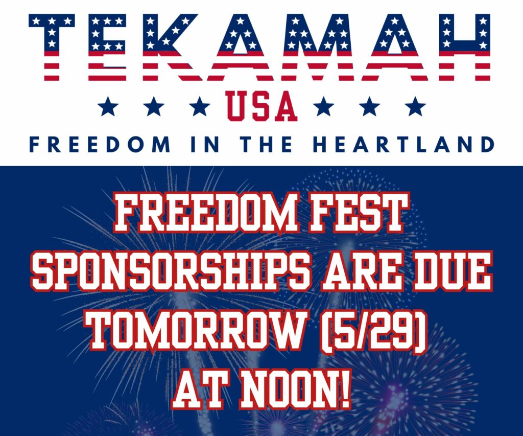 With the holiday weekend, we have extended the sponsorship deadline to tomorrow at noon! If you would like to be a Freedom Fest sponsor, complete the Google Forms link or text a board member. https://forms.gle/dWfRvQLJzpUgZjvR8