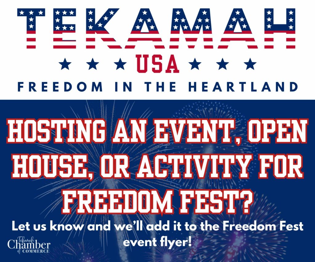 The 2024 Tekamah Chamber of Commerce board extends its warmest wishes for a safe, joyous, and fun-filled Freedom…